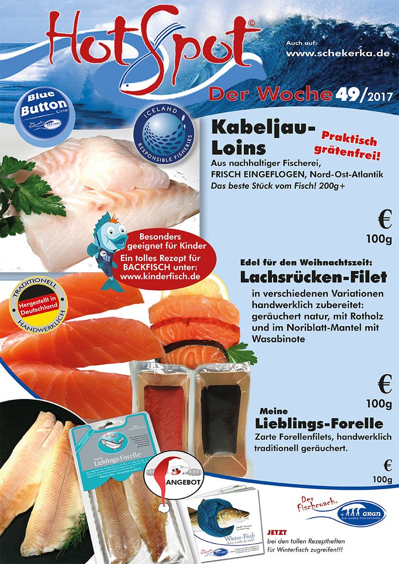 Die besonderen geräucherten und marinierten Lachsrücken sind auch in der nächsten Woche wieder an Ihrer gut sortierten Fischtheke zu bekommen.